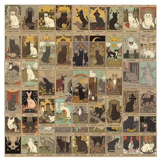 10/30/72PCS Cute Cartoon Mystic Cat Tarot Card Stickers Divination Aesthetic Decal Scrapbook Laptop Phone Car Graffiti Sticker