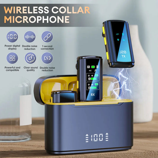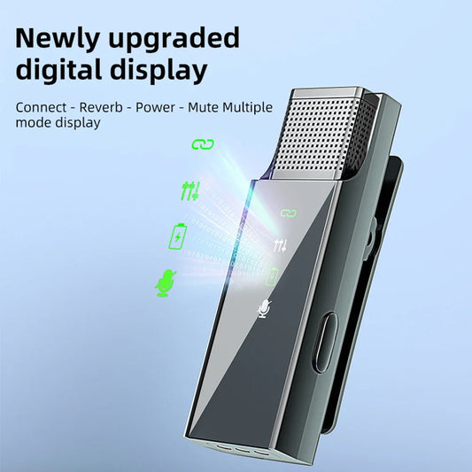 Wireless Lavalier Microphone Mini Portable Lapel Mic Dual-Channel Audio Video Voice Recording LCD for iPhone Android Live Stream