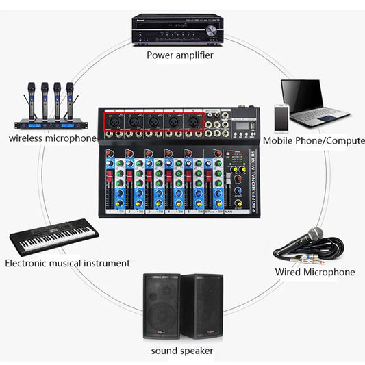 7 Channel Mixing Console Bluetooth USB Sound Card Pro Audio Equipment Mixer Audio Professional Digital Portable Video Consumer
