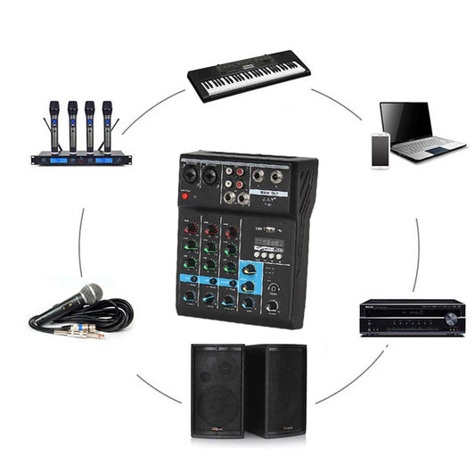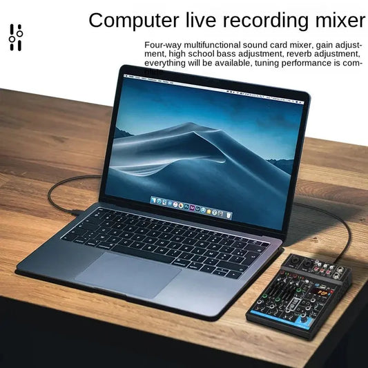 4-channel Professional Mixer Computer Stage Recording USB Sound Card High Low Tone Bluetooth DJ Controllers Effects Processors