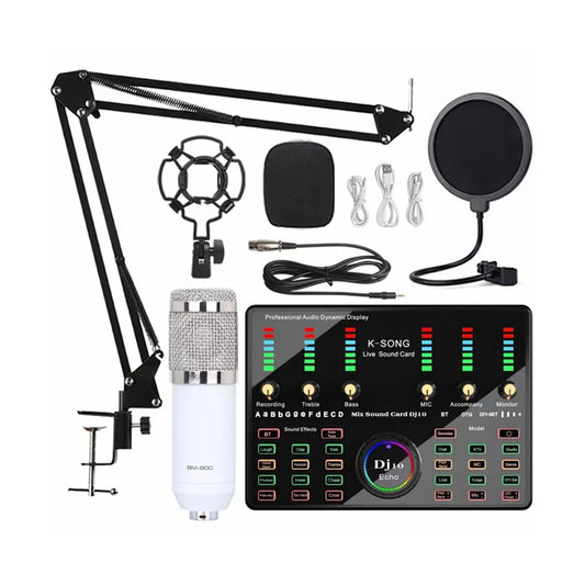 48V DJ10 Sound Card BM 800 Microphone Bluetooth Wireless Karaoke with Live Streaming for PC Phone Singing Gaming Youtube TikTok