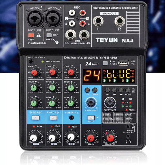 TEYUN 4-Channel Professional Portable Sound Mixer Console Computer Input 48v Power Model Number Certification Origin Mixing NA4