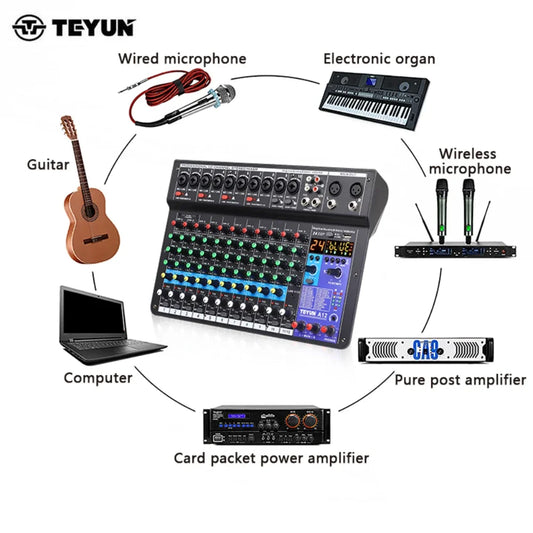 TEYUN A12 Channel Audio Mixer Professional Portable Mixer Sound Table Board Digital MP3 Computer Input 48v Power Number A6 A8