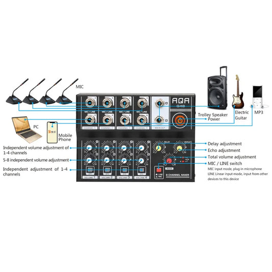 TEYUN Q-48 8-Channel Professional Portable Mixer Sound Mixing Table Rechargeable For Electric Guitar Computer DJ Certification