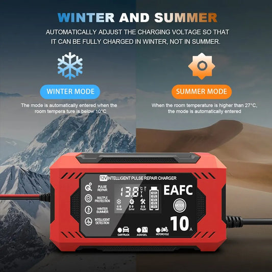 Car Battery Charger 12V 8A 10A Touch Screen Pulse Repair Digital LCD Display Smart Fast Charger for Car Motorcycle