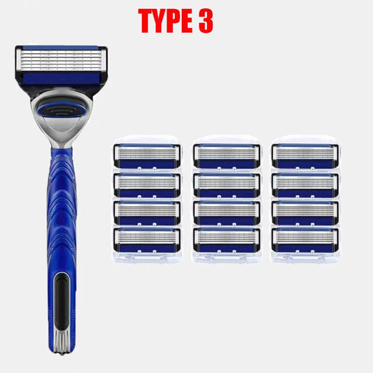 Men's manual razor safety razor 6-layer stainless steel hair removal knife, replaceable razor head, razor tools.