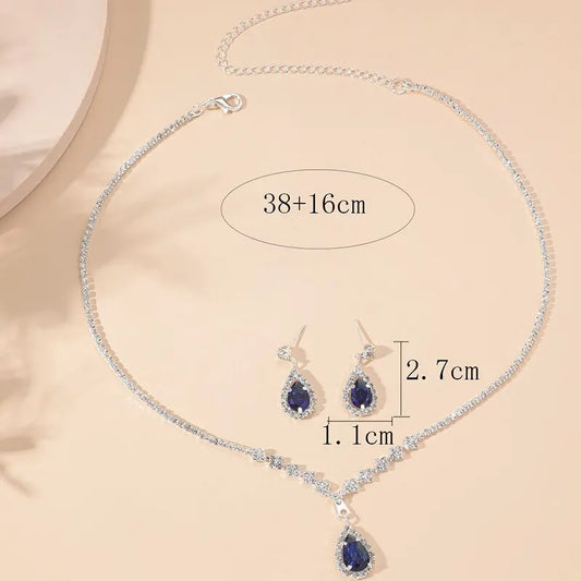 2 Pcs Set Blue Crystal Stone Denpent Necklace Bracelet With Dazzling Cubic Zircon Romantic Daily Wear Jewelry Girl Gift