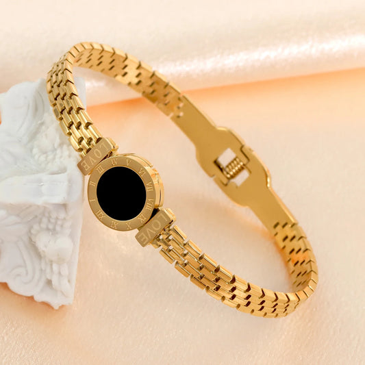 Fashion Bracelet For Women Black Acrylic Stainless Steel Couple Bracelet Carved Roman Numerals Girl Gift Hot Jewelry