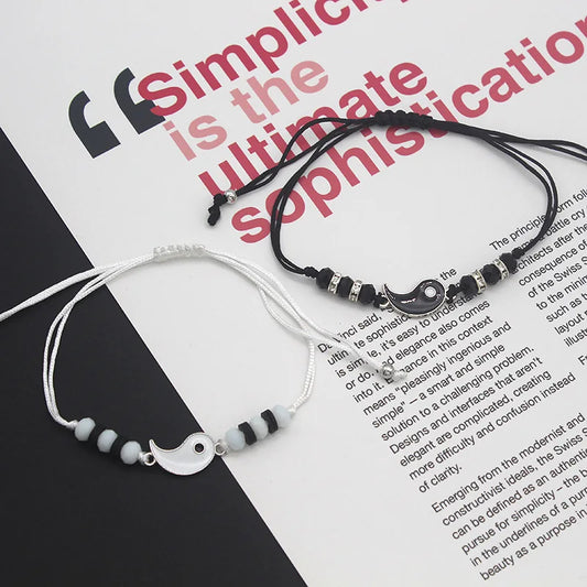 2Pcs/Lot Fashion Enamel Tai Chi Yin Yang Couple Bracelets Sets For Women Men Adjustable Braiding Handwear Matching Lover Gifts