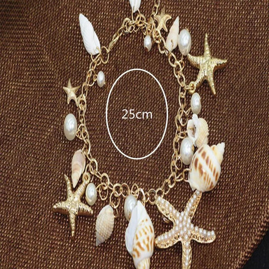 Gold Color Metal Starfish Conch Charm Women Bracelet Imitation Pearl Natural Conch Cute Summer Bracelet Y2K Fashion Jewelry