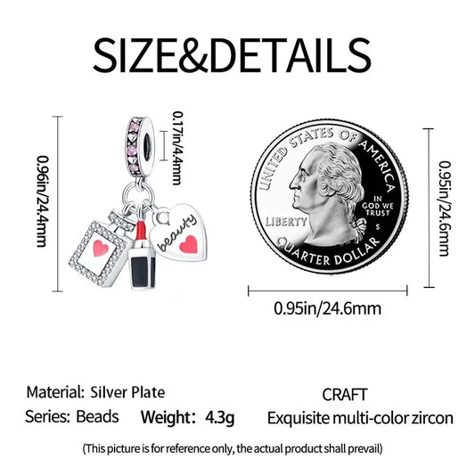 Silver-plated Lipstick, Perfume, High Heels Series Charm Fit Pandora Snake Bone Bracelet DIY Beads Women Jewelry Birthday Gift