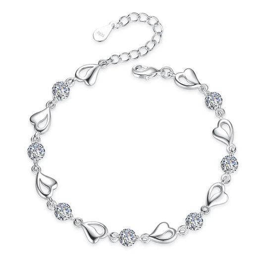 925 Sterling Silver Jewelry For Women High Quality Retro Heart Wedding Shaped Cubic Zirconia Bracelets Bangles