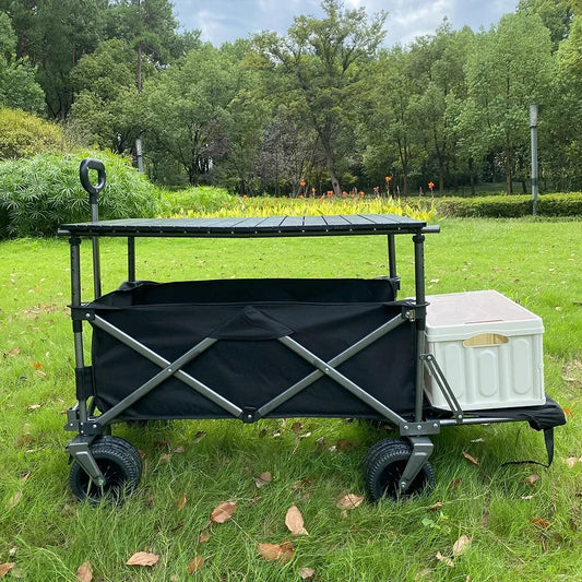 180L Liftable Tank Wheeled Camping Cart Handcart Foldable with Rear Door Hand Pushed Camping Trailer Trolley Picnic Vehicle