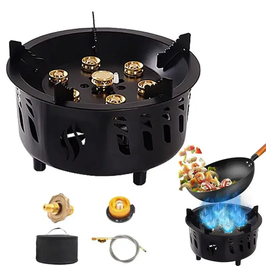 20000w Camping Gas Burner 7 Core Strong Fire Power Camping Stove Windproof Outdoor Cooking Burner Hiking Barbecue BBQ Cookware