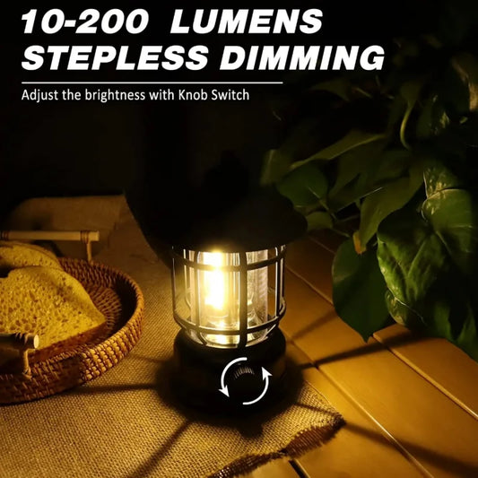 LED Camping Lamp 1200mAh Emergency Light Lantern IPX4 Waterproof Retro Atmosphere Chandelier Stepless Dimming for Fishing Hiking
