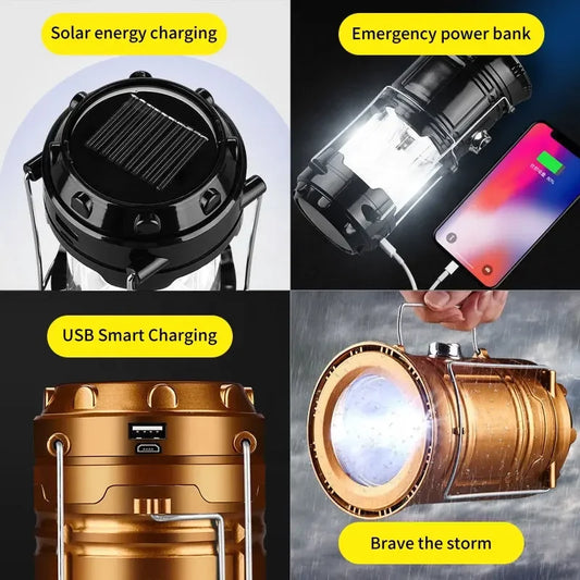 Portable Solar Charger Camping Lantern Lamp LED Outdoor Lighting Folding Camp Tent Lamp USB Rechargeable Lantern Flashlight