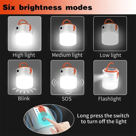Solar Camping Lantern 6 Modes Type-C USB Solar Portable Tent Lamp Led Lanterns For Outdoor Night Market Stall Emergency Light