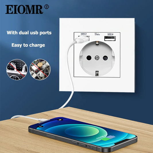 EIOMR-toma de corriente USB de pared, toma de corriente eléctrica de 5V, 2.1A, 16A, doble puerto USB, IOS, teléfono Android, puerto de carga