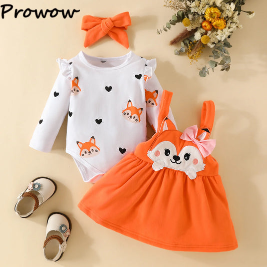 Prowow Cute Fox Baby Dresses For Girls Heart Print Romper+Suspender Fox Dress For Girls Fall Winter Newborn Baby Girl Clothes