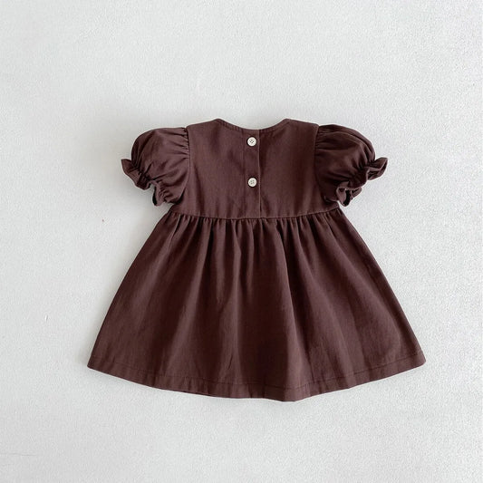 Baby Girl College Wind Willow Leaf Collar Bow Retro Princess Skirt Short Sleeve Summer