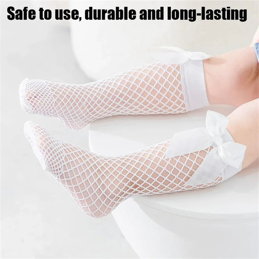 Lace Hollow Out Bow Socks Sweet Adorable Lovely Mesh Fishnet Girls Mid-Calf Long Socks Summer Kids Girls Hosiery Stockings