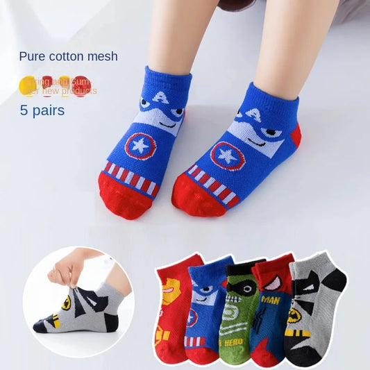 5 Pairs of Spring and Summer Thin European and American Fashion Cartoon Mesh Breathable Comfortable Sports Boys Cotton Socks