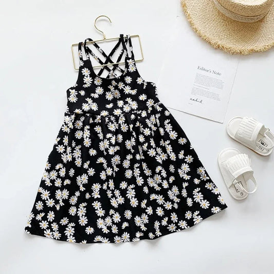 Summer Girl Backless Daisy Suspender Dress Seaside Holiday Children's Clothing 1-6Y
