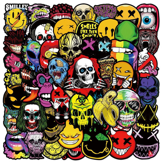 50Pcs Pop Horror Skull Cool Stickers Cartoon Graffiti Decals Guitar Laptop Helmet Motorcycle Skateboard Sticker Toys Decor