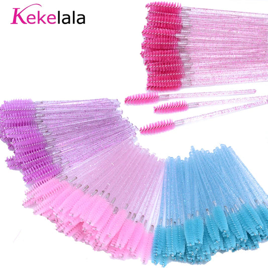 50Pcs Disposable Micro Glitter Eyelash Mascara Wands Mini Crystal Eye Lashes Brush Comb Eyebrow Spoolies Makeup Beauty Tools