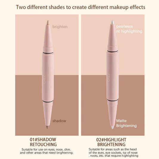 Facial Contour Three Dimensional Double Headed Pen Pearl Eyeshadow Stick Matte Concealer Pen Waterproof And Durable