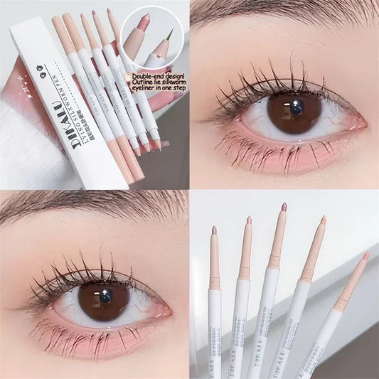 2 in 1 Eyeliner Silkworm Pen Double-end Pearl Highlighter Pencil Floating Light Eyelid Shadow Pen Eyeliner Outline Waterproof