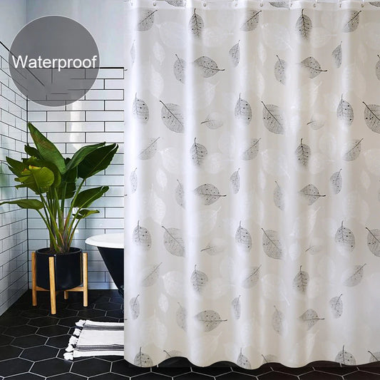Bathroom Shower Curtains PEVA Waterproof Thickening Bath Curtain With Hooks Rustproof Metal Grommets Leaf Pattern Shower Curtain