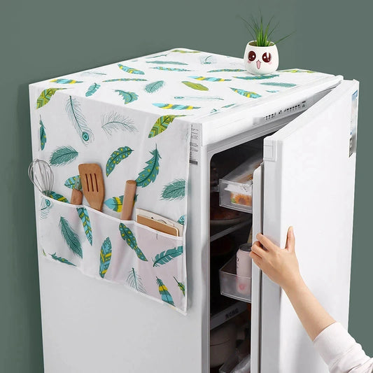 Refrigerator Dust Cover with Storage Bag Washable Printing Multi-purpose Household Washing Machine Cabinet Dust Protection Cover