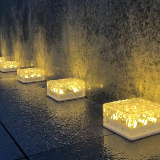 LQWELL Solar Brick Light 4PC Solar Light 8 Modes Decorative Outdoor Solar Glass Paving Stones Path Lighting Ice Stone Light