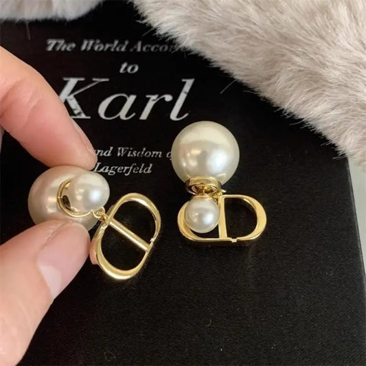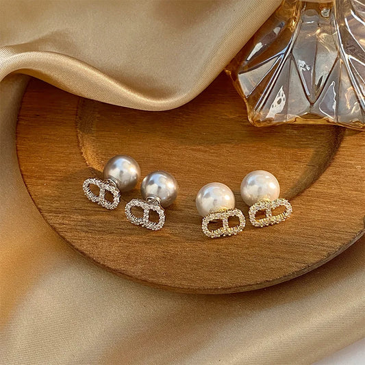New Elegant High-end Feel Light Luxury Needle Stud Earrings For Women Micro Rhinestone French Letter Pearl Earrings