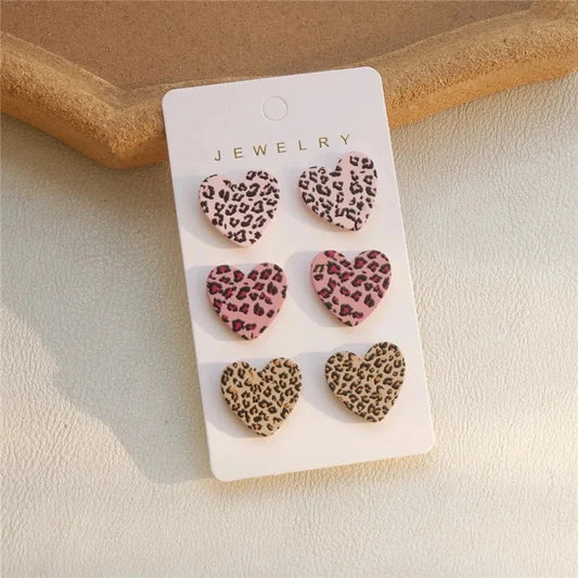3 Pair Heart Shape Dot Print Women Earrings Trio Pink Black Red Color Heart Lovely Cute Girls Earring Set Sweet Gift Jewelry Set