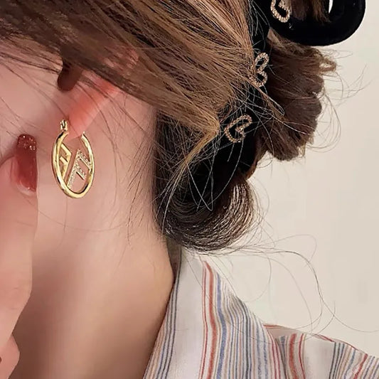 Full of Zircon Hollow Circle Letter F Ear Buckle Personality Fashion Cold Wind Light Luxury Niche Temperament Earrings