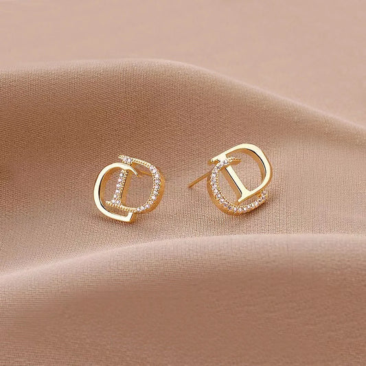 New Personalized Inlaid Letters Earrings Female Design Minimalist Earrings Light Luxury Niche Temperament Earrings Gift Jewelry
