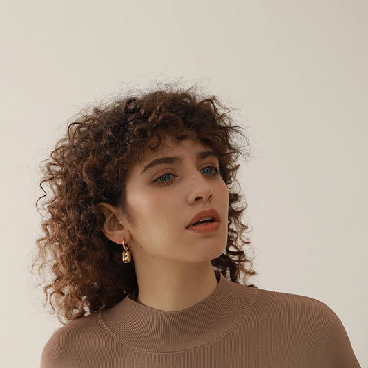French Vintage Pearl Geometric Earrings Women's Fashionable Simple High-end Feel Earrings New Design Metal Material Ear Studs