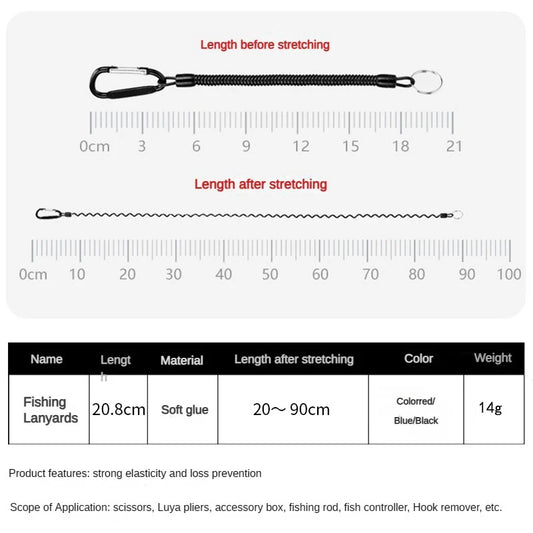 Fishing Lanyards 5pcs Tactical Retractable Spring Elastic Rope With Carabiner Camping Anti-lost Phone Keychain Fishing Rope