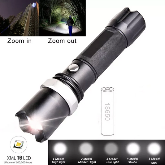 New LED Charging Zoom Aluminum Alloy Outdoor Waterproof Strong Light Multi-Function Household Portable Flashlight