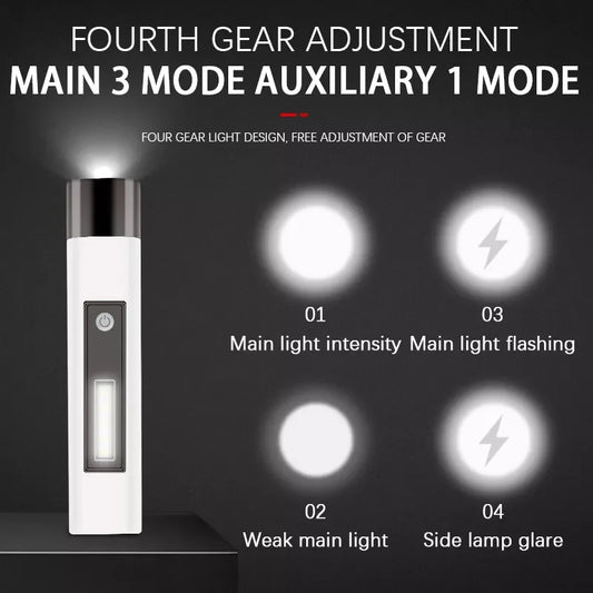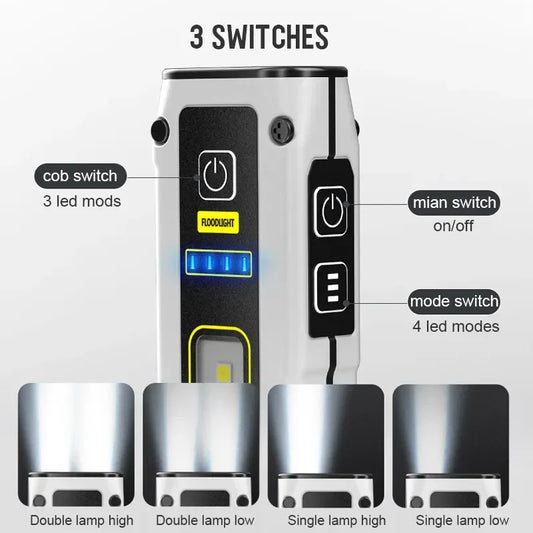 Mini Multi-function Flashlight Dual LED Source Work Light Type-C Rechargeable Torch Strong Magnet Emergency Power Bank Lantern
