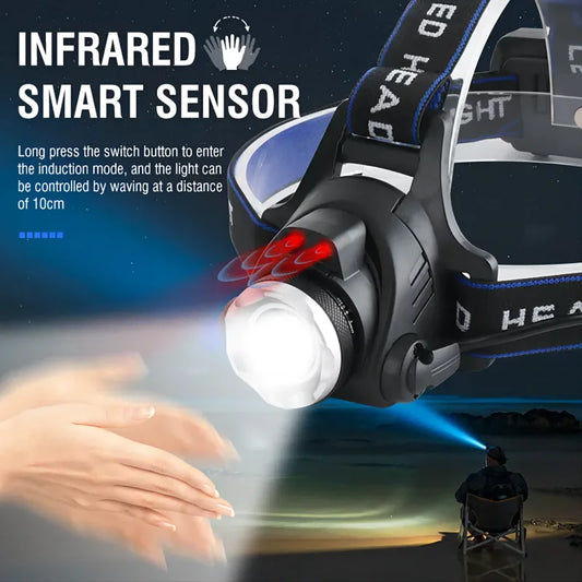Headlamp USB Rechargeable LED Motion Sensor Flashlight With Red Light 6 Modes Waterproof Light with built-in battery