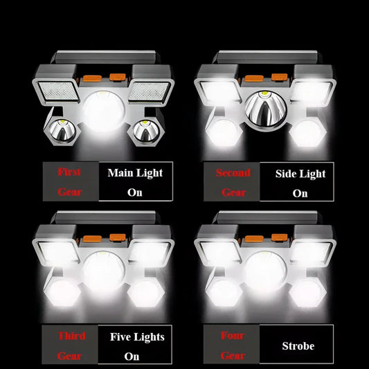 5LED Headlamp With Built-in 18650 Battery USB Rechargeable Portable Flashlight Lantern Headlamp Outdoor Camping Headlight