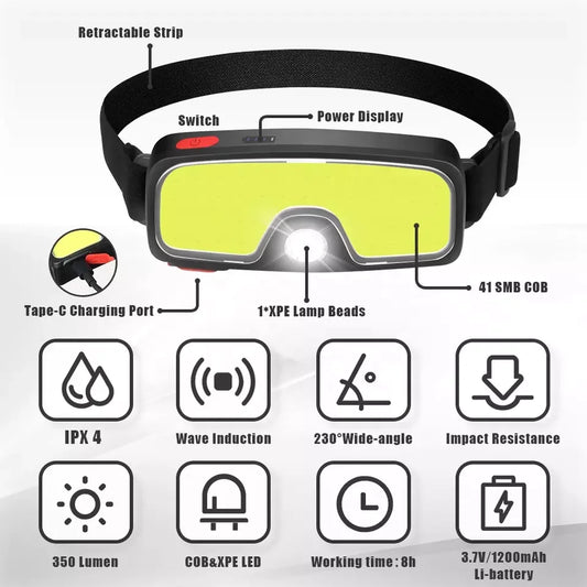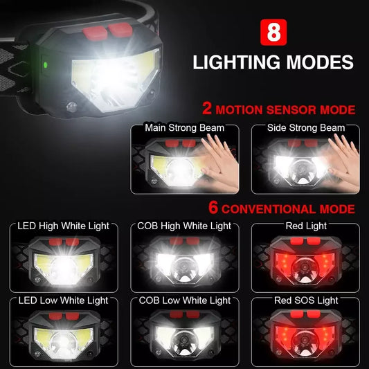 Cob Headlight Outdoor Waterproof Home Multi-Function Charging Headlight Led Fishing Glare Long-Range Induction Headlight
