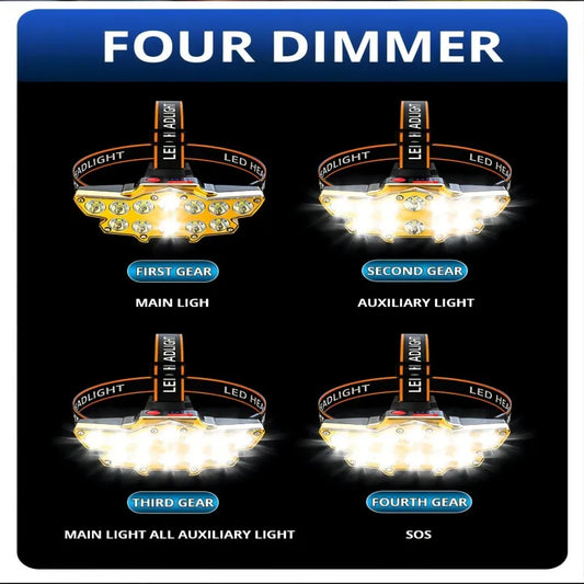 12Led Head-Mounted Flashlight Headlight Outdoor Night Fishing Waterproof Rechargeable Miner's Lamp Strong Light Headlight