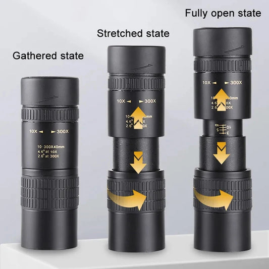 10-300X40 Zoom Len Spin Monoculars Mini Long Range Spyglass Telescope HD Outdoor Mobile Phone Photo Night Vision for Hunting