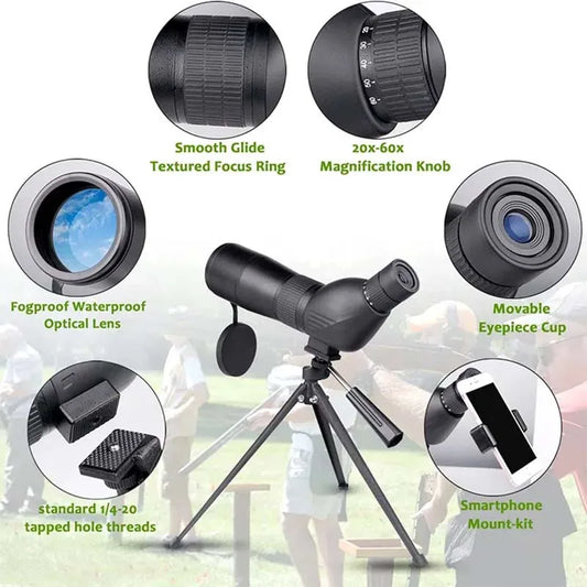 20-60X60 Powerful Monocular Zoom Telescope Bak4 Prism Waterproof Anti-Fog Camping Bird Watching Landscape potting Scope for Phon