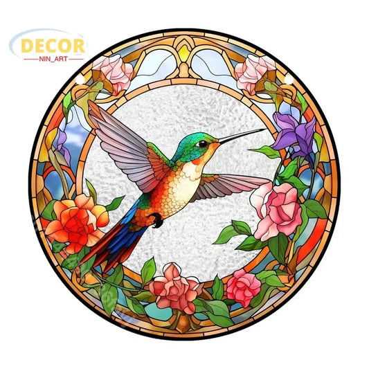 1Pc Glass Pattern Hummingbird Stained Window Hangings Colorful Flower Suncatchers for Windows Aluminum Sign 8x12 Inch