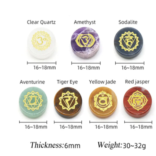 7pcs/Pack Round Shaped 7 Chakra Natural Stone Ornament Amethyst Quartz Energy Engraved Symbols Reiki Divination Healing 16-18mm